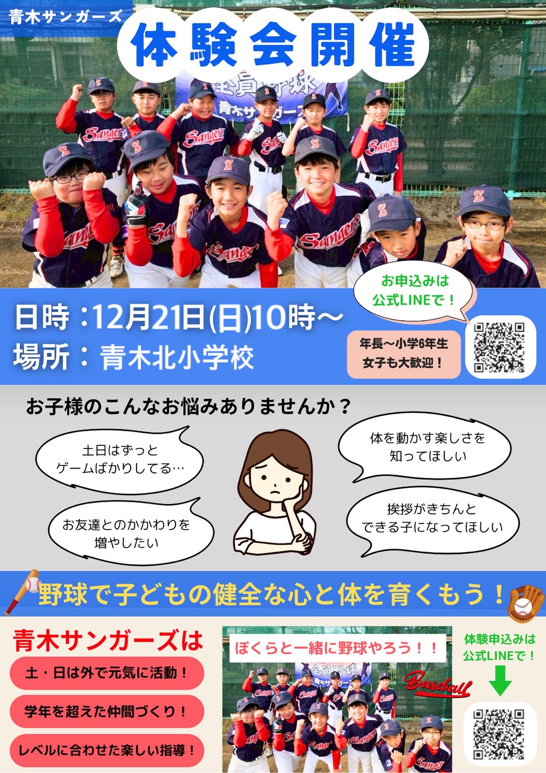 このメンバーで活動できるもあと少し。青木サンガーズでは、新しい仲間も随時募集中です!見学&体験、お気軽にお問合せください。