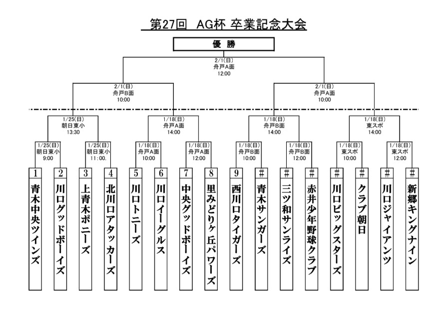 初戦は、1月18日(日)10:00~ vs 西川口タイガース@舟戸B面